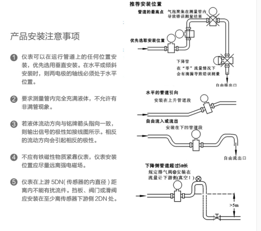 - 6.根據(jù)安裝場合的要求和環(huán)境,合理選擇使用一體型電磁流量計(jì)還是分體型電磁流量計(jì)。