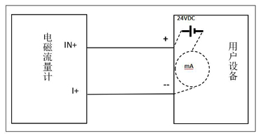 ① 一體電磁流量計有源4-20mA輸出接線(一體電磁流量計默認(rèn)情況下是有源4-20mA用戶設(shè)備電流表不能有電源輸出) |