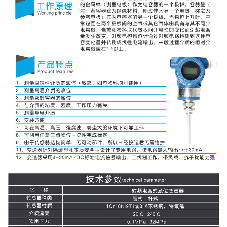采用射頻技術和微機技術解決了傳統(tǒng)電容式物位計溫漂大、標定難、怕粘附的難題,可廣泛應用于各種液體固體物位及界面的連續(xù)測量。...